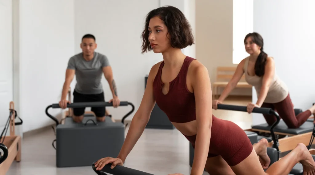 Que vous découvriez le Pilates Reformer pour la première fois ou que vous cherchiez à intensifier votre pratique, vous serez guidée, accompagnée et encouragée par des coachs expérimentés et passionnés. L’objectif est simple : vous permettre de progresser séance après séance, dans un cadre inspirant, soigné et qui vous ressemble.